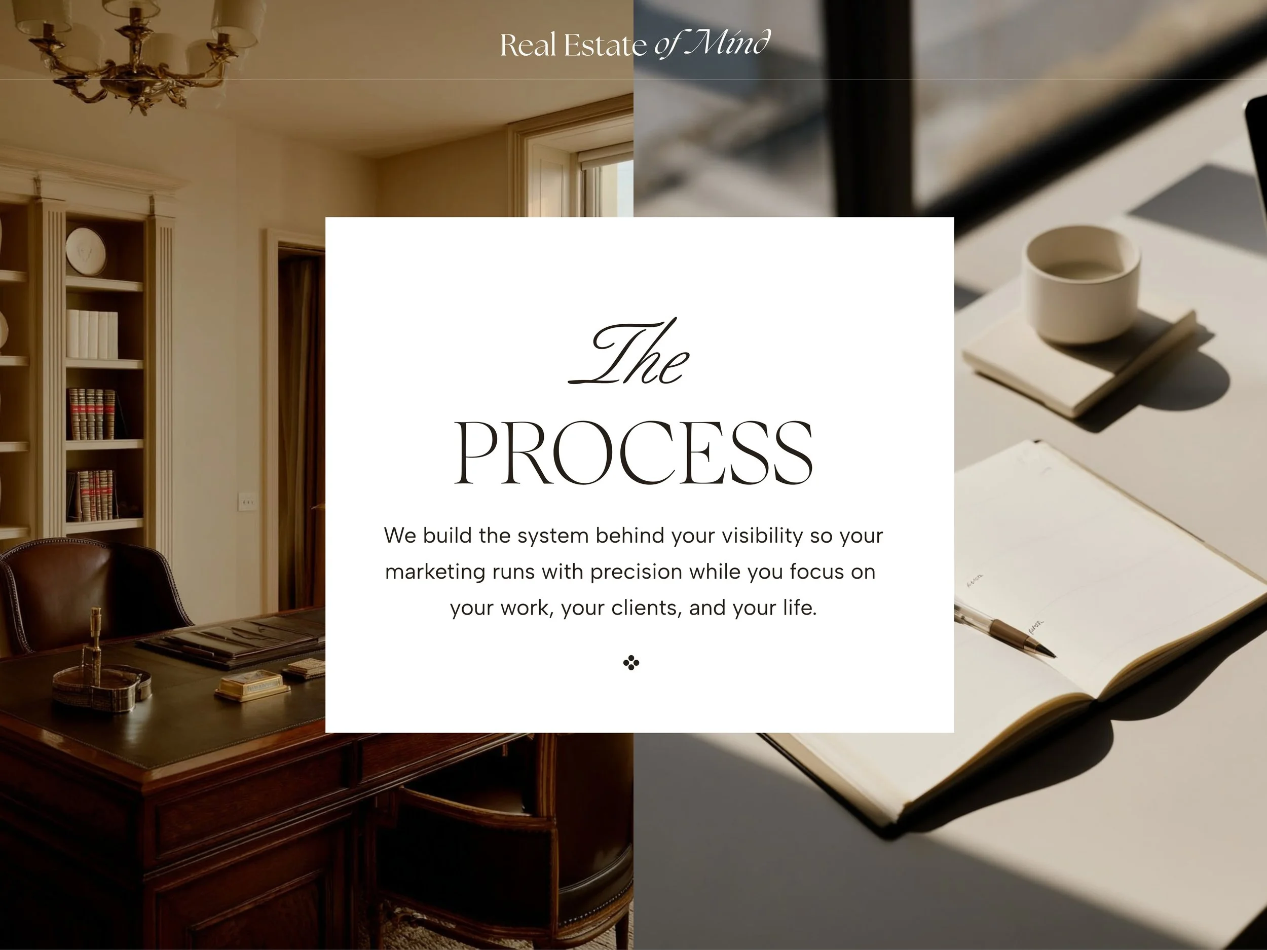 A done for you marketing system designed for top producing professionals who want their digital presence to reflect the caliber of the homes they represent without managing it themselves.
